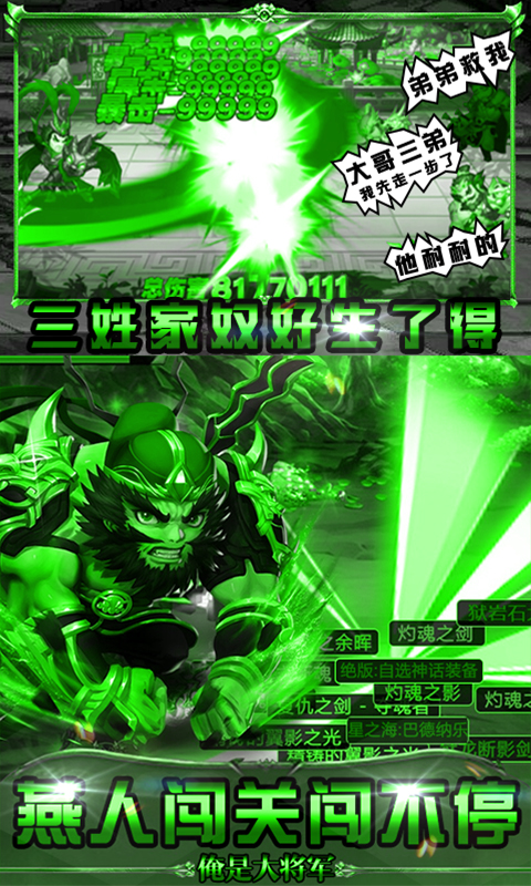 《我是大将军(送百抽)》是一款拥有挂机玩法的三国放置卡牌手游,逐鹿三国,重现经典三国题材!特色六大种族:群、魏、蜀、吴、魔、神,上百历史名将任你选!更有烧脑的阵容搭配和丰富的职业选择!相约好友还可以一起打BOSS,环环相扣的功能让你乐不思蜀。挂机八小时,上线五分钟,快乐每一天!